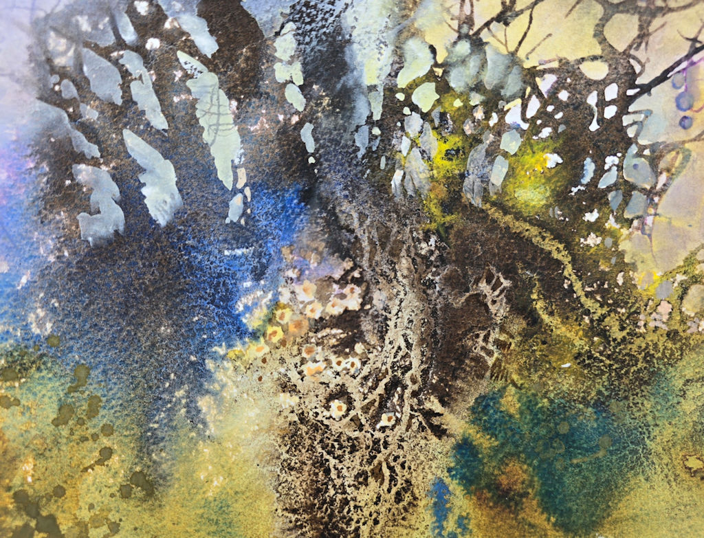 Artwork is photographed carefully but colours may vary on different screens. Several images are featured in Ann’s latest book ‘Poetic Woods’ to which you can also refer. Sizes are in centimetres, Height x Width, are approximate and for the image only. All works are unframed and unmounted. Artwork may be sent in a roll if too large to post flat safely. They will regain their flatness once presented in a mount and frame. All works are on paper unless specified. Watercolours may also have elements of other media, such as ink or gouache.